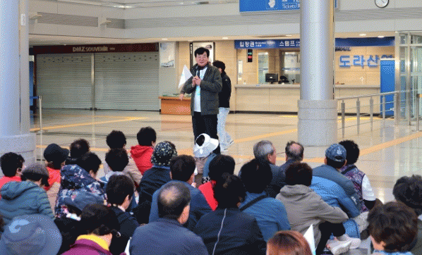 µµ¶ó»ê¿ª¿¡¼ ÇÏÂ÷ÇÑ ÅëÀÏ¿Â÷ ½Â°´µéÀº Àü¸Á´ë¿¡ ¿Ã¶ó ºñ¹«ÀåÁö´ë¸¦ ޹æÇÏ°í ºÏ³è ¶¥À» °ü¶÷ÇÑ ÈÄ ÀåÈﱺÀ¸·Î µ¹¾Æ¿Ô´Ù.