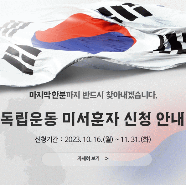 ÀÌ¿¡ Àü³²µµ´Â µ¶¸³¿îµ¿¿¡ °øÀ» ¼¼¿üÀ¸³ª ±â·ÏÀÌ ÇöÁ¸ÇÏÁö ¾Ê°í, ±â·ÏÀÌ À־ ÀÚ·á ºÎÁ·À¸·Î ¼ÈÆÀ» ¹ÞÁö ¸øÇÑ µ¶¸³¿îµ¿°¡¸¦ ´ë»óÀ¸·Î 11¿ù±îÁö µ¶¸³¿îµ¿ ¹Ì¼ÈÆÀÚ ¹ß±¼ ÁýÁß ±â°£À» ¿î¿µÇÑ´Ù.