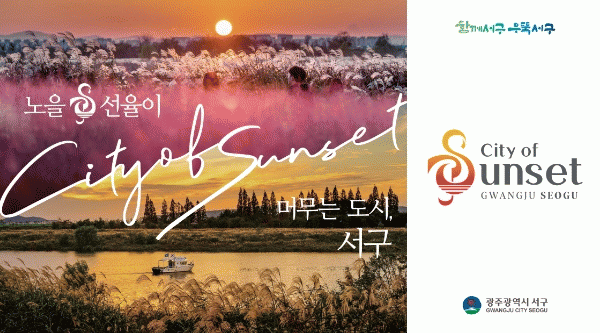 °ü±¤½½·Î°Ç ¡®³ëÀ»&¼±À²ÀÌ ¸Ó¹«´Â µµ½Ã, ¼±¸¡¯´Â Áö¿ªÀ» ´ëÇ¥ÇÏ´Â °ü±¤ÀÚ¿øÀ¸·Î ¼Õ²ÅÈ÷´Â ¼Ã¢µé³è ³ëÀ»°ú À½¾Ç¹®Èµµ½Ã ¼±¸ÀÇ À̹ÌÁö¸¦ °Á¶ÇÏ¸é¼ ¡®º¸°í Áñ±â¸ç ¸Ó¹«´Â¡¯ °ü±¤µµ½Ã µµ¾àÀÇ ÀÇÁö¸¦ ´ã¾Æ³Â´Ù. ¾Æ¿ï·¯ °ü±¤BIÀÇ ±âº» »ö»óµµ ³ëÀ»À» »ó¡ÇÏ´Â ºÓÀº °è¿·Î Á¤ÇßÀ¸¸ç, °ü±¤BI¿Í ½½·Î°Ç ¿µ¹®Ç¥±â´Â ¡®City of Sunset, Gwangju Seogu¡¯´Ù.