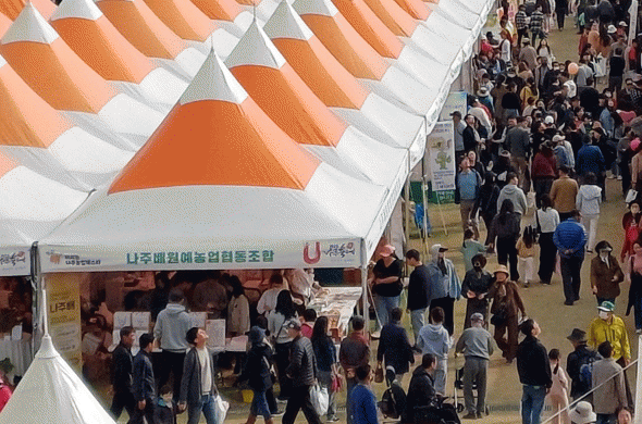 ³ªÁÖ ´ëÇ¥ Ư»ê¹°ÀÎ ½Å°í¹è¸¦ ¹è ÅÍÁö°Ô ¸Àº¼ ¼ö ÀÖ´Â ¹è ½Ã½Ä ÄÚ³Ê¿Í ³ªÁÖ½ÃÃà»ê´ÜüÇùÀÇȸ¿¡¼ ¿î¿µÇÏ´Â Ãà»ê¹° ½Ã½Ä ºÎ½º´Â ¿¬ÀÏ ÁÙ Áö¾î¼± °ü±¤°´µé·Î ¹®Àü¼º½Ã¸¦ ÀÌ·ç°í ÀÖ´Ù.