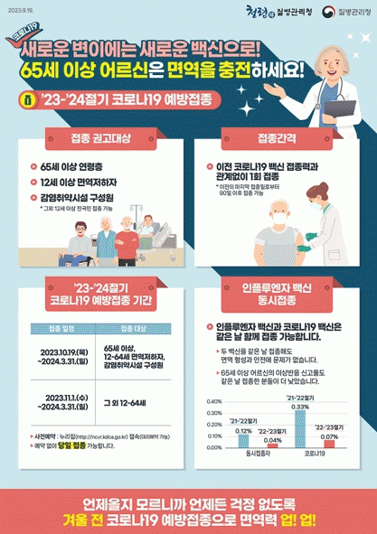 À̹ø Àý±â Á¢Á¾Àº ÇöÀç À¯ÇàÇÏ´Â º¯ÀÌ¿¡ ¸ÂÃç °³¹ßµÈ XBB¸¦ ±â¹ÝÀ¸·Î ÇÑ ÈÀÌÀÚ, ¸ð´õ³ª ¹é½ÅÀÌ È°¿ëµÇ¸ç, °ú°Å Á¢Á¾·Â°ú »ó°ü¾øÀÌ ¸¶Áö¸· Á¢Á¾ ÀϺÎÅÍ ÃÖ¼Ò 3°³¿ù(90ÀÏ) ÀÌÈÄ 1ȸ Á¢Á¾À¸·Î ¿Ï·áµÇ¸ç, °ü³» 24°³ Á¢Á¾ ±â°ü(º¸°Ç±â°ü 17°³¼Ò, ÁöÁ¤ ÀÇ·á±â°ü 7°³¼Ò)¿¡¼ Á¢Á¾ÇÒ ¼ö ÀÖ´Ù.