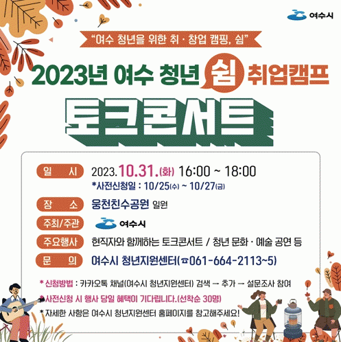 ¿©¼ö½Ã´Â À¯ÀÍÇÑ ÅäÅ©ÄܼƮ ÁøÇàÀ» ¿©¼ö½Ãû³âÁö¿ø¼¾ÅÍ Ä«Ä«¿ÀÅå ä³Î¿¡¼ »çÀü ½Åû ¹× Áú¹®À» ¹ÞÀ¸¸ç, ¼±Âø¼ø 30¸í¿¡°Ô´Â À̺¥Æ®µµ ÁغñµÈ´Ù.