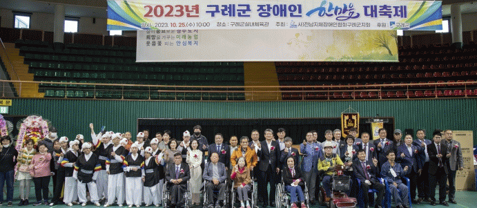 ±¸·Ê±ºÀÌ Áö¿øÇϰí Àü³²ÁöüÀå¾ÖÀÎÇùȸ ±¸·Ê±ºÁöȸ°¡ ÁÖÃÖÇÑ À̹ø Çà»ç¿¡´Â Áö¿ª ³» Àå¾ÖÀΰú °¡Á·, °ü·Ã±â°ü Á¾»çÀÚ µî 450¿© ¸íÀÌ Âü¼®Çß´Ù.