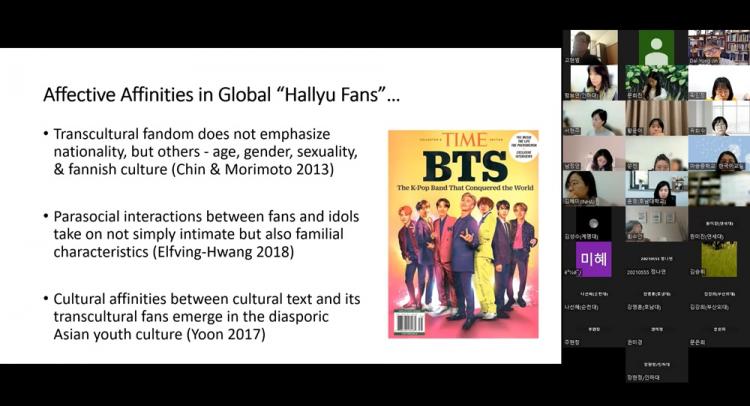 À̹ø Ä÷ÎÄû¾öÀº ÇÑ·ù¿Í ¹Ìµð¾î Ä¿¹Â´ÏÄÉÀÌ¼Ç ºÐ¾ßÀÇ ¼¼°èÀû ÇÐÀÚÀÎ Áø´Þ¿ë ±³¼ö(ij³ª´Ù »çÀÌ¸Õ ÇÁ·¹ÀÌÁ®´ë)ÀÇ ¡®Ãʱ¹°¡Àû ±ÙÁ¢¼º(Transnational Proximity)ÀÌ À̲ô´Â ½ÅÇÑ·ùÀÇ ½ºÅ丮ÅÚ¸µ¡¯À̶õ ÁÖÁ¦·Î È£³²´ëÇб³ ±³¼ö ¹× °ü·Ã ¿¬±¸ÀÚ 30¿©¸íÀÌ Âü¿©ÇÑ °¡¿îµ¥ ¿Â¶óÀÎ ÁÜȸÀǸ¦ ÅëÇØ ÁøÇàµÆ´Ù.
