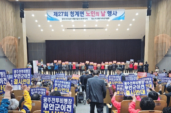 ¶ÇÇÑ ±â³ä½Ä Àü ¸¶À» ÀÌÀå µî ÁֹεéÀÌ Âü¿©ÇÏ´Â ¹«¾È ±º °øÇ× ÀÌÀü ¹Ý´ë ÆÛÆ÷¸Õ½º¸¦ ÆîÃÄ ±º °øÇ× ÀÌÀü¿¡ ´ëÇÑ ¹Ý´ë ÀÇÁö¸¦ ºÐ¸íÈ÷ Ç¥¸íÇßÀ¸¸ç, ±â³ä½Ä¿¡¼´Â ¸ð¹ü³ëÀΰú ³ëÀκ¹Áö ±â¿©ÀÚ·Î Á¤·¡¿µ(û°è¸é ±¸·Î±æ)¾¾¿Í ÇÔ¿µ¹è(û°è¸é û°èÁß¾Ó±æ)¾¾°¡ ±º¼öǥâÀ» ¼ö»óÇß´Ù.