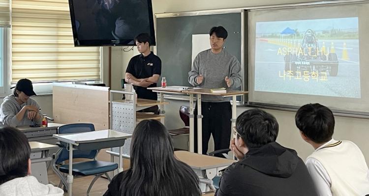 À̹ø ¸àÅ丵Àº Àü¶ó³²µµ ±³À°Ã»¿¡¼ ÁøÇàÇÏ´Â ¹Ì·¡µµÀüÇÁ·ÎÁ§Æ®ÀÇ ÀÏȯÀ¸·Î ³ªÁÖ°íµîÇб³ ±è´Ù¿¹ ÇлýÀ» ºñ·ÔÇØ 7¸íÀÇ ÇлýÀÌ °ø¸ðÀü¿¡ ¼±Á¤µÇ¸é¼ ÀÌ·ïÁ³À¸¸ç, Áö³ 5¿ù 19ÀÏ¿¡µµ ASPHALT ÆÀ¿øµéÀÌ ³ªÁÖ°íµîÇб³¸¦ ¹æ¹®ÇØ ¸àÅ丵À» ÁøÇàÇß¾ú´Ù.