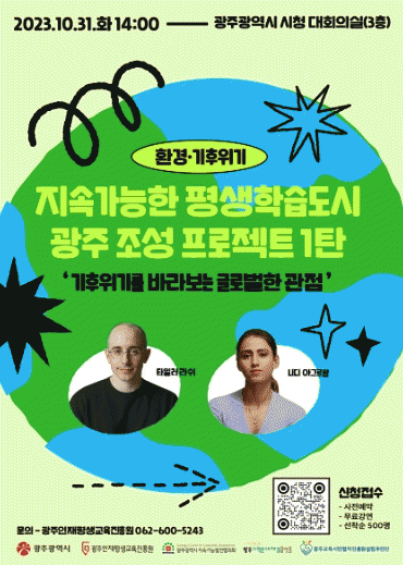ÇÑÆí Àü¹®°¡ ÃÊû Ư°Àº ¡®Áö¼Ó°¡´ÉÇÑ Æò»ýÇнÀµµ½Ã ±¤ÁÖ Á¶¼º ÇÁ·ÎÁ§Æ®¡¯ÀÇ Çϳª·Î ÃÑ 3ȸ·Î ÁøÇàµÈ´Ù. 2ȸÂ÷(11¿ù) ¹æ¼ÛÀÎ ÁÙ¸®¾ÈÀÌ ±âÈÄȯ°æ °³¼±À» À§ÇÑ ºñ°ÇÀ» ÁÖÁ¦·Î °ÀÇÇϰí, 3ȸÂ÷(12¿ù)´Â ¹Ú¼÷Çö Áö¼Ó°¡´É¹ßÀü½Ã½ºÅÛ¿¬±¸¼Ò ¼ÒÀåÀÌ Áö¼Ó°¡´É¹ßÀü ¸ñÇ¥¿¡ ´ëÇÑ ÀÌÇØ¸¦ ÁÖÁ¦·Î Ư°ÇÑ´Ù.
