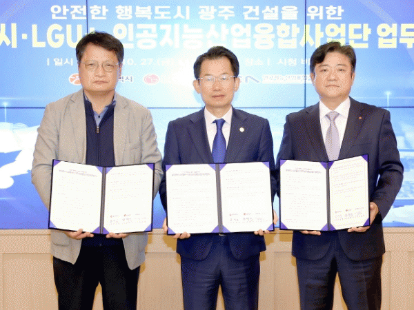 ±¤ÁÖ±¤¿ª½Ã´Â 27ÀÏ ½Ãû ºñÁî´Ï½º·ë¿¡¼ ÀΰøÁö´ÉÀ» Ȱ¿ëÇÑ CCTV°üÁ¦¼¾ÅÍ °üÁ¦±â¼ú °íµµÈ¸¦ À§ÇÑ È¸¼±»ç¾÷ÀÚÀÎ ¿¤ÁöÀ¯Ç÷¯½º(LGU+), ÀΰøÁö´Éµ¥ÀÌÅͼ¾Å͸¦ ¿î¿µÇÏ´Â ÀΰøÁö´É»ê¾÷À¶ÇÕ»ç¾÷´Ü°ú ¡®¾ÈÀüµµ½Ã ±¤ÁְǼ³ ¾÷¹«Çù¾à¡¯À» ü°áÇß´Ù.