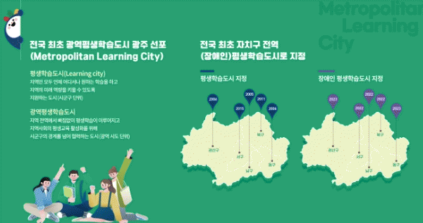 ±¤Áֽô 5°³ ÀÚÄ¡±¸, ±¤Áֽñ³À°Ã», ±¤ÁÖÀÎÀçÆò»ý±³À°ÁøÈï¿ø°ú ÇÔ²² Àü±¹ ÃÖÃÊ 5°³ ÀÚÄ¡±¸ ¸ðµÎ Æò»ýÇнÀ µµ½ÃÀÌÀÚ Àå¾ÖÀÎ Æò»ýÇнÀµµ½Ã·Î ÁöÁ¤µÈ Àü±¹ ÃÖÃÊ ¡®±¤¿ªÆò»ýÇнÀµµ½Ã¡¯ÀÓÀ» È«º¸ÇÒ °èȹÀÌ´Ù.