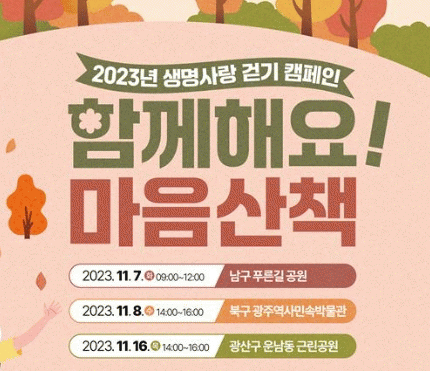 ÀÚ»ì ¿¹¹æ¿¡ °ü½É ÀÖ´Â ½Ã¹ÎÀÌ¸é ´©±¸³ª Âü¿©ÇÒ ¼ö ÀÖÀ¸¸ç, Çà»ç ÇöÀå¿¡¼µµ Âü°¡ ½ÅûÀ» ¹Þ´Â´Ù. ÀÚ¼¼ÇÑ ³»¿ëÀº ±¤¿ªÁ¤½Å°Ç°º¹Áö¼¾ÅÍ È¨ÆäÀÌÁö °øÁö»çÇ×À» ÂüÁ¶ÇÏ¸é µÈ´Ù.