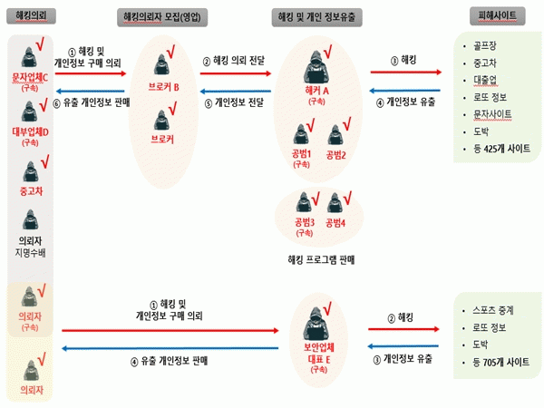 °æÂûÀº ÇØÅ·Á¶Á÷»Ó¸¸ ¾Æ´Ï¶ó, ÇØÅ·ÇÑ °³ÀÎÁ¤º¸¸¦ ÀÌ¿ëÇÏ¿© ¿µ¾÷ÇÑ ¹®ÀÚ»çÀÌÆ® ´ëÇ¥ C¾¾, ¾Ç¼ºÇÁ·Î±×·¥ Á¦ÀÛ ÀÇ·ÚÇÏ¿© À¯Æ÷ÇÑ ´ëºÎ¾÷ÀÚ D¾¾µµ °Ë°ÅÇß´Ù.