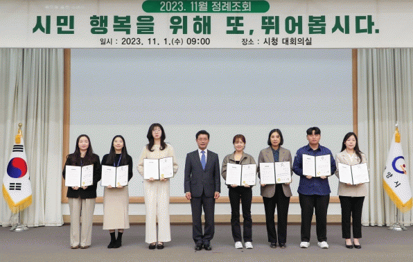 À̳¯ Á¤·ÊÁ¶È¸¿¡¼´Â ½ÃÁ¤¹ßÀü À¯°ø Á÷¿ø 7¸í¿¡°Ô ǥâÀåÀ» ¼ö¿©ÇÏ¸ç ¸ÃÀº¹Ù ¾÷¹«¸¦ ¼º½ÇÈ÷ ÃßÁøÇØ ÁØ Á÷¿øµéÀÇ ³ë°í¿¡ °¨»çÇÑ ¸¶À½À» ÀüÇß´Ù.