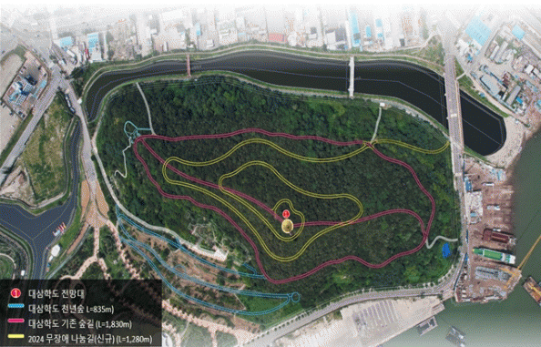 ÇöÀç Á¶¼ºµÇ¾î ½Ã¹ÎµéÀÌ ¸¹ÀÌ Ã£´Â ´ë»ïÇеµ µÑ·¹±æ 1.2km´Â ¡®È²Åä ¸Ç¹ß±æ¡¯ÀçÁ¶¼ºµÇ°í, Á¤»ó±îÁö ¹«Àå¾Ö±æ 1.8km¸¦ ½Å±Ô ³ë¼±À¸·Î ±¸»óÇØ ³ª°£´Ù´Â º¹¾ÈÀÌ´Ù. ¶ÇÇÑ Àü¸ÁŸ¿ö, ½£½ºÅ׸®ÅÚ¸µ, ²É±æ°ú ÈްԽü³µµ È®ÃæÇÑ´Ù.