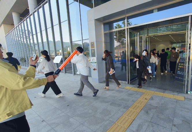 ±ºÃ» Á÷¿øÀ» ´ë»óÀ¸·Î ´©Àü¿¡ µû¸¥ °Ç¹°¿¡ Á¤Àü°ú ÈÀç°¡ ¹ß»ýÇÑ »óȲÀ» °¡Á¤ÇØ ¡ãû»ç ³» ¹æ¼ÛÀ» ÅëÇÑ »óȲ ÀüÆÄ ¡ã´ëÇÇ À¯µµ ¡ãÈÀç ½Ã ±¹¹ÎÇൿ¿ä·É ±³À° ¼øÀ¸·Î ÁøÇàµÆ´Ù.