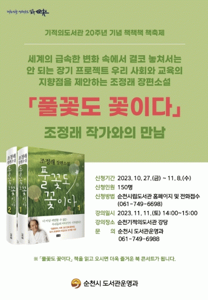 Á¶Á¤·¡ ÀÛ°¡¿ÍÀÇ ¸¸³²¿¡ °ü½É ÀÖ´Â ½Ã¹ÎÀº 8ÀϱîÁö ÀüÈ ¶Ç´Â ¼øÃµ½Ã¸³µµ¼°ü ´©¸®Áý¿¡¼ ½ÅûÇÏ¸é µÈ´Ù.