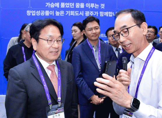 °±âÁ¤ ±¤ÁÖ½ÃÀåÀº °³È¸»ç¿¡¼ ¡°Á¦Á¶¾÷ ±â¹ÝÀÌ ¿¾ÇÇÑ ±¤ÁÖ¿¡¼ »ê¾÷À» ÀÏÀ¸Å°°í ÀÏÀÚ¸®¸¦ Ű¿ì´Â ¹æ¹ý Áß Çϳª°¡ â¾÷¼º°ø·üÀÌ ³ôÀº µµ½Ã¸¦ ¸¸µå´Â °ÍÀÌ´Ù¡±¸ç ¡°Ã¢¾÷Àº ÀÏÀÚ¸® Á¤Ã¥ÀÌÀÚ »ê¾÷ Á¤Ã¥À̸ç, û³â Á¤Ã¥ÀÌÀÚ ¿ì¸® ±¤ÁÖÀÇ ¹Ì·¡ Á¤Ã¥ÀÌ´Ù. â¾÷Æä½ºÆ¼¹úÀº ¸ðµç â¾÷°¡¿Í ÅõÀÚÀÚ°¡ ÇÔ²² ¸¸³ª°í ¹Ì·¡¸¦ ¼³°èÇϸç À¯´ÏÄÜÀ» ÇâÇØ ³ª¾Æ°¡´Â ÃàÁ¦ÀÌ´Ù¡±°í ¹àÇû´Ù.