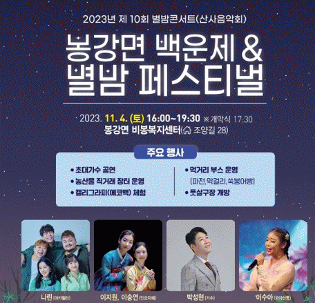 À̹̿µ ºÀ°¸éÀåÀº ¡°Á¦10ȸ¸¦ ¸ÂÀÌÇÏ´Â º°¹ãÄܼƮ´Â Áö¿ª ÁֹεéÀÇ ¹®È¿¹¼ú ÇâÀ¯ÀÇ ±âȸ¿Í ÈÇÕÀÇ ÀåÀÎ ¸¸Å °¡Á·, ÁöÀεé°ú ÇÔ²² ³î·¯ ¿À¼Å¼ ±í¾î°¡´Â °¡À»ÀÇ Á¤Ã븦 ¸¸³£ÇÏ½Ã±æ ¹Ù¶õ´Ù¡±°í ¸»Çß´Ù.