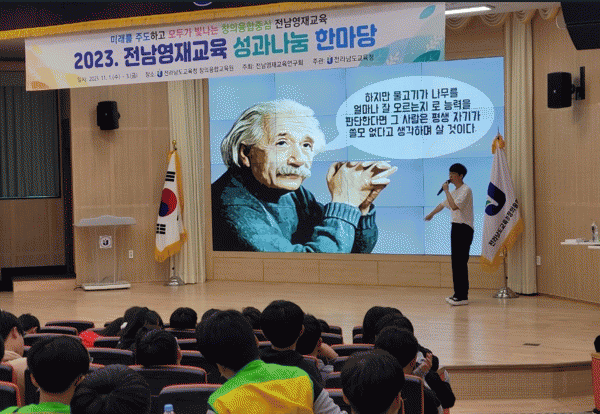 ¡®¹Ì·¡¸¦ ÁÖµµÇϰí, ¸ðµÎ°¡ ºû³ª´Â âÀÇÀ¶ÇÕÁ᫐ Àü³²¿µÀç±³À°¡¯À» ÁÖÁ¦·Î ÇÑ À̹ø ¼º°ú ³ª´® ÇѸ¶´çÀº ¿Ã ÇÑ ÇØ ½Ã¡¤±º ¿µÀç±³À°¿ø¿¡¼ °¢ÀÚÀÇ Àç´ÉÀ» ¹ßÈÖÇÑ ÃÊ¡¤ÁßÇб³ ¿µÀç±³À° °á°ú¹°À» ¹ßÇ¥ÇÏ´Â ÃàÁ¦ÀÇ ÀåÀ¸·Î ¸¶·ÃµÆ´Ù.