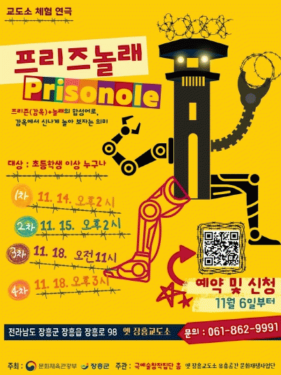 ¸ÕÀú¡®±Ø¿¹¼úâÀÛÁý´Ü ÈÀÌ Ã¼ÇèÇü »óȲ±ØÀ¸·Î ±³µµ¼Ò Åì¾Æº¸±âÀÇ ¹®À» ¿¬´Ù. ¡®ÇÁ¸®Áî³î·¡ PRISONOLE¡¯´Â Âü¿©ÀÚ°¡ ¼ö°¨ÀÚ·Î ºÐÇØ Èï¹Ì·Î¿î À̾߱⸦ µû¶ó ¹è¿ì¿Í ÇÔ²² ±³µµ¼Ò Àü¿ªÀ» À̵¿Çϸç ÄûÁ Ǫ´Â üÇèÇü ÇÁ·Î±×·¥ÀÌ´Ù. ÁøÇàÀ» ¸ÃÀº ±Ø¿¹¼úâÀÛÁý´Ü ÈïÀº ÀåÈï ¿¬±ØÀεé·Î ±¸¼ºµÈ ¿¬±Ø´Üü·Î ±×°£ Áö¿ª ¼ÒÀ縦 ¹ß±¼ÇØ Ã¢ÀÛ ¹× °ø¿¬»ç¾÷À» ÆîÃĿԴÙ.