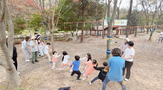 ¾Æµ¿µéÀÇ ³î±Ç¸® º¸Àå°ú ³óÃÌÀÇ Áö¼Ó°¡´ÉÇÑ ³îÀ̹®È Çü¼ºÀ» À§ÇØ ±âȹµÈ À̹ø Çà»ç´Â ³ª¹«¿Í ³ª¹«¸¦ ¹åÁÙ·Î ¿¬°áÇØ ±×³×, ¤¶óÀÎ, Áٴٸ®, ÇØ¸Ô µîÀ» ¼³Ä¡ÇØ ¾ÆÀ̵鿡°Ô ÀÚ¿¬³îÀÌÅ͸¦ ¼±¹°Çß´Ù.