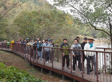 Âü°¡ÀÚµéÀº Ä¡À¯ÀÇ ½£ ÁÖÂ÷Àå¿¡¼ ½ÃÀÛÇÏ¿© ´ë°îÀú¼öÁö¿¡ Á¶¼ºµÈ ¹«Àå¾Ö ³ª´®±æÀ» Áö³ª ûõÀÓµµ¿¡¼ µ¹¾Æ¿À´Â ÄÚ½º¸¦ °È´Â µ¿¾È ´ÜdzÀ¸·Î ¹°µç °¡À»À» ÇѲ¯ ¸¸³£Çß´Ù.