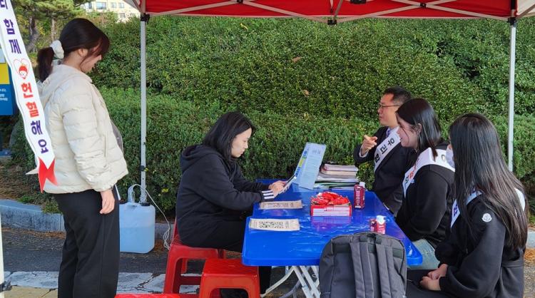 À̹ø ÇåÇ÷ Ä·ÆäÀο¡´Â »çȸºÀ»ç´Ü ±×·çÅͱâ(Áöµµ±³¼ö Áø°æ¹Ì)ÇлýµéÀÌ ÇåÇ÷ Âü¿©¸¦ µ¶·ÁÇÏ´Â È«º¸ Ȱµ¿À» ÁøÇàÇßÀ¸¸ç, ÇåÇ÷ ºÀ»çȰµ¿¿¡ ÀÚ¹ßÀûÀ¸·Î Âü¿©ÇÑ Çлýµé¿¡°Ô´Â 4½Ã°£ÀÇ ÇåÇ÷ºÀ»ç½Ã°£ ÀÎÁ¤°ú ¼ÒÁ¤ÀÇ ±â³äǰÀÌ Á¦°øµÆ´Ù.