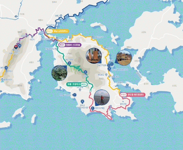 ¿Ïµµ ³²ÆÄ¶û±æ ÄÚ½º´Â ÃÑ ¼¼ ±¸°£À¸·Î ³ª´µ´Âµ¥ 86 ÄÚ½º(24.5km)´Â ¿¾ ³²Ã¢±³¿¡¼ºÎÅÍ Ã»ÇØÁø À¯ÀûÁö¸¦ Áö³ª ¿ÏµµÇØÁ¶·ù¼¾ÅͱîÁö, 87 ÄÚ½º(18km)´Â ¿Ïµµ ÇØÁ¶·ù¼¾ÅÍ¿¡¼ ¿ÏµµÅ¸¿ö, Á¤µµ¸® ±¸°èµî, ÈÈïÃʵîÇб³¿¡¼ ³¡³´Ù.