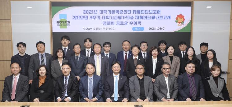 [ÅåÅå´º½º]±¤ÁÖ´ëÇб³(ÃÑÀå ±èµ¿Áø)´Â 8ÀÏ ¿ÀÈÄ ±³³» ÇàÁ¤°ü 3Ãþ ½º¸¶Æ®°Àǽǿ¡¼ 2021³â ´ëÇб⺻¿ª·®Áø´Ü, 2022³â 3Áֱ⠴ëÇбâ°üÆò°¡ÀÎÁõ À¯°øÀÚ¿¡ ´ëÇÑ °ø·Î»ó ¼ö¿©½ÄÀ» °³ÃÖÇß´Ù.