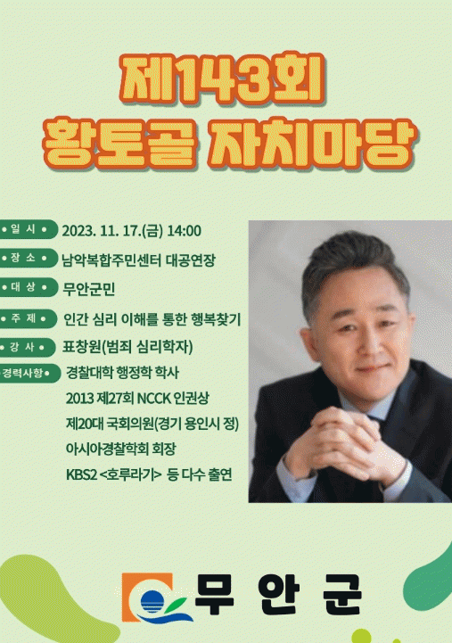 ±è»ê ¹«¾È±º¼ö´Â ¡°¹«¾ÈYDÆä½ºÆ¼¹ú °³¸· Çà»ç¿¡ ¸ÂÃç¼ ÁøÇàµÇ´Â ȲÅä°ñ ÀÚÄ¡¸¶´ç¿¡¼ Ưº°ÇÑ °»ç´ÔÀ» ¸ð½Ã°í °¿¬À» ÁøÇàÇÏ´Â ¸¸Å ¸¹Àº ºÐµéÀÌ ÀÌ ±âȸ¸¦ ³õÄ¡Áö ¾Ê±â¸¦ ¹Ù¶õ´Ù¡±°í ¸»Çß´Ù.
