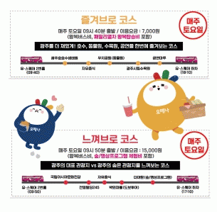 Å׸¶Çü ½ÃƼÅõ¾î¹ö½º´Â Áö³ 6¿ù17ÀϺÎÅÍ ¸ÅÁÖ Å䡤ÀÏ ¿îÇàµÇ°í ÀÖ´Ù. ±¤Áֽô ¾Æ¸§´Ù¿î ±¤ÁÖÀÇ °¡À»À» Áñ±æ ¼ö ÀÖµµ·Ï ¡®½¬¾îºê·Î(ÀÚ¿¬Èú¸µ)¡¯, ¡®Áñ°Üºê·Î(°¡Á·+³ªµéÀÌ)¡¯, ¡®´À²¸ºê·Î(À£´Ï½ºÃ¼Çè)¡¯ µî 3°³ ÄÚ½º¸¦ ¸¶·Ã, 11ÀϺÎÅÍ 12¿ù3ÀϱîÁö »õ·Î ¼±º¸ÀδÙ.