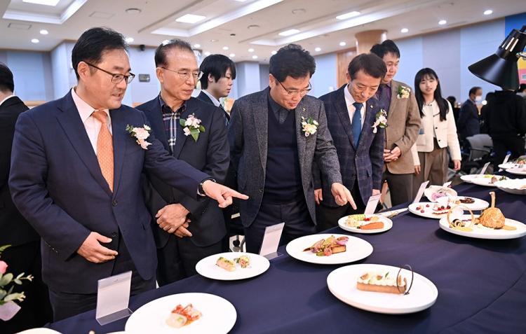 À¯Çý¼÷ º¸°Ç°úÇдëÇÐÀåÀº ¡°4³âµ¿¾È ½ñ¾Æ¿Â ¿ä¸®¿¡ ´ëÇÑ ¿Á¤°ú âÀÛ ¿ª·®ÀÇ °á½ÇÀ» Àü½ÃÀÛǰ¿¡¼ È®ÀÎÇÒ ¼ö ÀÖ¾ú´Ù. ¾ÕÀ¸·Î ¹Ì·¡ ¿Ü½Ä»ê¾÷À» À̲ø¾î ³ª°¥ À¶¡¤º¹ÇÕÇü ¿Ü½Ä °æ¿µÀÎ, ǪµåÅ×Å© »ê¾÷À» ¼±µµÇÏ´Â Àü¹® Á¶¸®ÀÎÀ¸·Î ¼ºÀåÇϴµ¥ ´õ ¸¹Àº ³ë·ÂÀ» ±â¿ï¿© ´Þ¶ó¡±°í ´çºÎÇÏ¸é¼ ¡°¿À´Ã ÀÌ·± ¿µ±¤½º·± ÀÛǰÀü½Ãȸ´Â ÇлýµéÀÇ ³ë·Â°ú ÇÔ²² À̵éÀ» ¹¬¹¬È÷ ¹Ï¾îÁÖ¸ç µÞ¹Ù¶óÁö ÇØÁֽŠÇкθð´ÔµéÀÌ °è¼Ì±â¿¡ °¡´ÉÇß´Ù¡±¸ç Çкθðµé¿¡ ´ëÇÑ °¨»çÀÇ Àλ絵 ÀüÇß´Ù.