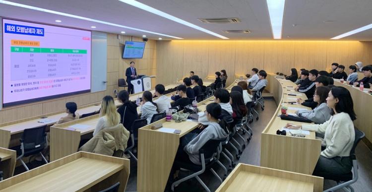 À̳¯ Ư°¿¡¼ À±¿µ¼® ƯÀÓ±³¼ö´Â ¡®´ëÇлýµéÀÌ ²À ¾Ë¾Æ¾ß ÇÒ ±¹¼¼ÇàÁ¤ Á¦µµ¡¯¶ó´Â ÁÖÁ¦·Î ±¹¼¼Ã»ÀÇ ±â´É ¹× ¿ªÇÒÀ» ½ÃÀÛÀ¸·Î ¼¼±ÝÀÇ ¿ª»ç, ±¹¼¼ ÇöÀå °æÇè´ãÀ» Åä´ë·Î ÀÚ½ÅÀÇ °¡Ä¡°ü µîÀ» ¼Ò°³ÇÏ¸ç ¼¼¹«Á÷ °ø¹«¿ø°ú ¼¼¹«»ç¸¦ ²Þ²Ù´Â ÇлýµéÀ» °Ý·ÁÇß´Ù.