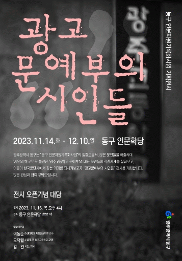 ÀÌ´Þ 14ÀϺÎÅÍ 12¿ù 10ÀϱîÁö µ¿±¸ Àι®Çд翡¼ ¿¸®´Â À̹ø Àü½Ã¿¡´Â 16ÀÏ ¿ÀÈÄ 4½Ã À̵¿¼ø Á¶¼±´ëÇб³ ±³¼öÀÇ ÁøÇàÀ¸·Î ¼öÇʰ¡ÀÌÀÚ Àü(îñ) ±¤ÁÖ°íµîÇб³ÀåÀÎ ¿À´ö·Ä ÀÛ°¡¿Í ½ÃÀÎÀÌÀÚ ÀÇ»çÀÎ ±è¿Ï ÀÛ°¡°¡ ÇÔ²²ÇÏ´Â ¡®±¤°í ¹®¿¹ºÎÀÇ ¹®´Ü»çÀû Àǹ̡¯¿¡ ´ëÇÑ ´ë´ãµµ °³ÃֵȴÙ. Âü¿© ¹æ¹ý µî ±âŸ ÀÚ¼¼ÇÑ »çÇ×Àº Àι®µµ½ÃÁ¤Ã¥°ú Àι®µµ½Ã±âȹ°è·Î ¹®ÀÇÇÏ¸é µÈ´Ù.
