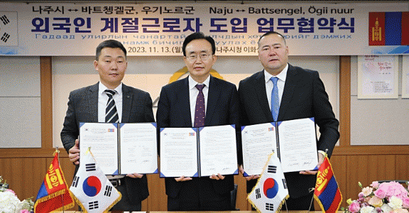 ³ªÁֽô 13ÀÏ ½Ãû»ç ÀÌȽǿ¡¼ ¸ù°ñ ¡®¹ÙÆ®Ãð֡¯, ¡®¿ì±â³ë¸£¡¯ ±º(ÏÛ)°ú ¿Ü±¹ÀÎ °èÀý±Ù·ÎÀÚ µµÀÔ ¾÷¹«Çù¾àÀ» ü°áÇß´Ù°í ¹àÇû´Ù.