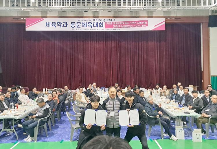 ƯÈ÷, üÀ°Çаú Ãѵ¿¹®È¸¿Í ÅðÀÓ±³¼ö ¸ðÀÓÀº °¢°¢ 100¸¸¿ø¾¿ ÀåÇбÝÀ» ±âŹÇß´Ù. üÀ°Çаú ÀçÇлý Áß ¿ì¼öÇлý 4¸íÀ» Ãßõ¹Þ¾Æ °¢°¢ 50¸¸¿ø¾¿ ÀåÇбÝÀ» ¼ö¿©ÇÏ¿´´Ù. ¸Å³â ÈÄÇеéÀ» À§ÇØ ÅðÀÓ±³¼ö ¸ðÀÓ°ú Ãѵ¿¹®È¸¿¡¼´Â ÀåÇбÝÀ» Àü´ÞÇÏ¿© Çаú¹ßÀü ¹× ÀçÇлýµé¿¡°Ô Å« ¹öÆÀ¸ñÀÇ ¿ªÇÒÀ» ÇØ ÁÖ°í ÀÖ´Ù.
