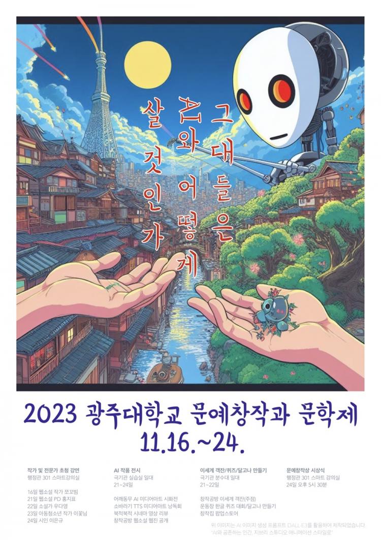[ÅåÅå´º½º]±¤ÁÖ´ëÇб³(ÃÑÀå ±èµ¿Áø) ¹®¿¹Ã¢ÀÛ°ú´Â 11¿ù 16ÀϺÎÅÍ 24ÀϱîÁö ¡®±×´ëµéÀº AI¿Í ¾î¶»°Ô »ì °ÍÀΰ¡¡¯¶ó´Â Å׸¶·Î ¹®ÇÐÁ¦¸¦ °³ÃÖÇÑ´Ù.