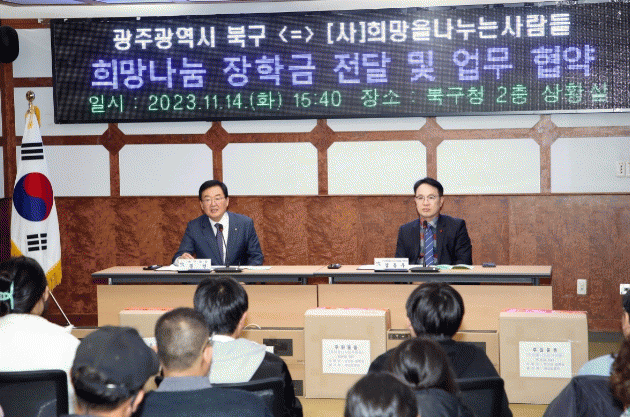15ÀÏ ºÏ±¸¿¡ µû¸£¸é Áö³ 14ÀÏ ºÏ±¸Ã» »óȲ½Ç¿¡¼ ¹®ÀÎ ºÏ±¸Ã»Àå, ±èµ¿¿ì Èñ¸ÁÀ»³ª´©´Â»ç¶÷µé ºÎȸÀå µî °ü°èÀÚµéÀÌ Âü¿©ÇÑ °¡¿îµ¥ ¡®Èñ¸Á ³ª´® ÀåÇÐ±Ý ÈÄ¿øÀ» À§ÇÑ ¾÷¹«Çù¾à¡¯ÀÌ Ã¼°áµÆ´Ù.