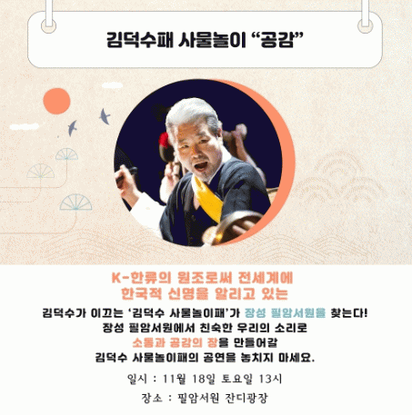 À̹ø Çà»ç´Â À强±ºÀÌ Áö³ÇØ¿¡ À̾î 2³â ¿¬¼Ó ¡®¼¼°èÀ¯»ê Ȱ¿ë ÇÁ·Î±×·¥¡¯ °ø¸ð ¼±Á¤À¸·Î ¸¶·ÃÇÑ ¿ÃÇØ ¸¶Áö¸· °ø¿¬ÀÌ´Ù. ¾Õ¼± 9¿ù¿¡´Â ÆÒÅҽ̾î3 ÁØ¿ì½Â ¡®¶óºñ´ø½º¡¯ ¸â¹öÀÎ ¼Ò¸®²Û °í¿µ¿, 10¿ù¿¡´Â ÀüÅëÀ½¾Ç ÇÕÁÖ´Ü ¡®¼±Ç³¡¯ÀÌ ¿ì¸® °¡¶ôÀÇ ¾Æ¸§´Ù¿òÀ» ¹æ¹®°´µé¿¡°Ô ÀüÇÑ ¹Ù ÀÖ´Ù.
