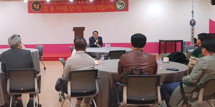 À̳¯ ¹Ú»óö ÃÑÀåÀº ¡®ÇÑ¡¤Á߽ô븦 ¸ÂÀÌÇÑ Áö¹æÁ¤ºÎÀÇ ¿ªÇÒ°ú °úÁ¦¡¯¸¦ ÁÖÁ¦·Î ÇÑ Æ¯°¿¡¼, °¢°è°¢Ãþ¿¡¼ Áö¿ª»çȸ¸¦ À§ÇØ Çå½ÅÇϰí ÀÖ´Â Áß±¹ ÃÖ°í°æ¿µÀÚ°úÁ¤ 8±â ¿ø¿ìµé¿¡°Ô ¹Î°£ ¿Ü±³°üÀ¸·Î¼ÀÇ ¿ªÇÒÀ» °Á¶Çß´Ù.