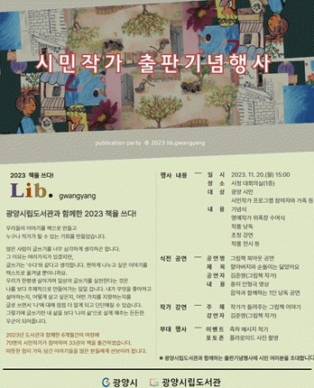 '2023 ½Ã¹ÎÀÛ°¡ ÃâÆÇ±â³äÇà»ç'ÀÇ ÀÚ¼¼ÇÑ ³»¿ë°ú Âü¿© ¹æ¹ý µîÀº ½Ã¸³µµ¼°ü ´©¸®ÁýÀ» ¹æ¹®Çϰųª Áß¾Óµµ¼°üÀ¸·Î ¹®ÀÇÇϸé ÀÚ¼¼È÷ ¾È³»¹ÞÀ» ¼ö ÀÖ´Ù.