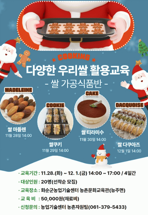 À̹ø ±³À°Àº ¿ì¸® ½Ò·Î ¸¸µç Á¦°ú¡¤Á¦»§(º£ÀÌÄ¿¸®) °úÁ¤À» ½Ç½ÀÇÏ¿© ³ó»ê¹°ÀÇ Á߿伺À» Á÷Á¢ ±ú´Ý°í, ½Ç»ýȰ¿¡ Àû¿ëÇÒ ¼ö ÀÖ´Â ¿ä¸®¹ý º¸±ÞÀ» ¸ñÇ¥·Î ½Ò°¡·ç Á¾·ù ¹× ½Ò ¼Òºñ ¹æ¹ý ÀÌ·Ð ±³À°, ½Ò ÄíŰ, ½Ò Ƽ¶ó¹Ì¼ö, ½Ò ´ÙÄí¾ÆÁî ¸¸µé±â ½Ç½À ±³À° µîÀ» ÃÑ 4ȸ¿¡ °ÉÃÄ 11¿ù 28ÀϺÎÅÍ 12¿ù 1ÀϱîÁö ÁøÇàÇÒ ¿¹Á¤ÀÌ´Ù.