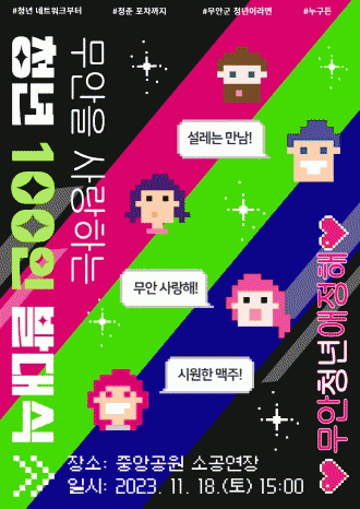 ¡®¹«¾ÈÀ» »ç¶ûÇϴ û³â 100ÀΡ¯À̶õ ¹«¾È¿¡¼ Ȱµ¿Çϴ û³âµéÀÌ Áö¿ª ¾ÖÂø°¨À» °ÈÇϰí, û³â ¸®´õ·Î¼ ¼ºÀå, û³âÁ¤Ã¥ Á¦¾È Ȱ¼ºÈ, Áö¿ª»çȸ¿ÍÀÇ ¿¬°á °È µîÀ» ÇÒ ¼ö ÀÖµµ·Ï »õ·Î¿î Àǹ̸¦ ºÎ¿©ÇÏ´Â Çà»çÀÌ´Ù.