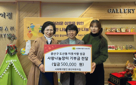 [ÅåÅå´º½º]±¤ÁÖ ±¤»ê±¸ µµ»êµ¿ ¼ÒÀç ±¤»ê¾î¸°ÀÌÁýÀÌ Áö³ 16ÀÏ Áö¿ª µ¹º½ ÀÌ¿ôÀ» À§ÇØ 50¸¸ ¿øÀ» ÈÄ¿øÇß´Ù. ±¤»ê¾î¸°ÀÌÁý ¿ø³» ¾Æµ¿, Çкθ𰡠Âü¿©ÇÑ ¹ÙÀÚȸ ¼öÀͱÝÀ¸·Î ¸¶·ÃÇÑ ÈÄ¿ø±ÝÀº µ¿Àý±â Àç³ Ãë¾à°èÃþ ³¹æ¿ëǰ Áö¿øÀ» À§ÇØ »ç¿ëµÉ ¿¹Á¤ÀÌ´Ù.