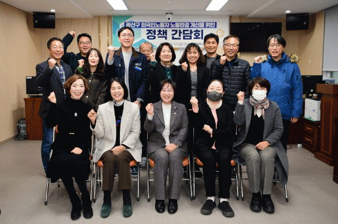 À̳¯ °£´ãȸ´Â ¿Ü±¹Àγ뵿ÀÚÀÇ ³ëµ¿È¯°æ¿¡ ´ëÇÑ ±¤»ê±¸ÀÇ Çö »óȲÀ» °øÀ¯ÇÏ°í °³¼± ¹æ¾ÈÀ» ¸ð»öÇϱâ À§ÇÑ ÀÚ¸®·Î, ±¤ÁÖ¹ÎÁßÀÇÁý ±èÃáÈ£ º¯È£»ç¿Í ±¤ÁÖÀü³²ÀÌÁֳ뵿ÀÚÀÎ±Ç³×Æ®¿öÅ© È«°üÈñ ¿î¿µÀ§¿øÀ» ºñ·ÔÇÑ °ü·Ã ±â°ü ¹× ´Üü, ±¤»ê±¸ÀÇ¿ø, °ü°è°ø¹«¿ø µî 20¿© ¸íÀÌ ÇÔ²²ÇØ ½ÇÈ¿¼º ÀÖ´Â ÀÇ°ß µµÃâÀ» À§ÇØ ¸Ó¸®¸¦ ¸Â´ò´Ù.