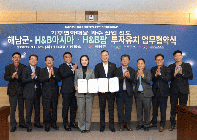 Çù¾à½Ä¿¡´Â ¸íÇö°ü ÇØ³²±º¼ö, H&B¾Æ½Ã¾Æ¡¤H&BÆÊ ±èÈñÁ¤ ´ëÇ¥ÀÌ»ç, ¹ÚÁÖÇö Àü¹«°¡ Âü¼®ÇØ ÇØ³²±º ±âÈĺ¯È´ëÀÀ °ú¼ö»ê¾÷ ¼±µµ¸¦ À§ÇÑ Çù·Â°ü°è¸¦ ±¸ÃàÇϱâ·Î Çß´Ù.