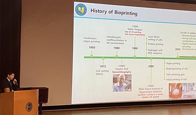 [ÅåÅå´º½º]È£³²´ëÇб³ ÀÓ»óº´¸®Çаú °È¿Áø ±³¼ö´Â Áö³ 11¿ù 17ÀÏ À»Áö´ëÇб³ ´º¹Ð·¹´Ï¾ö¼¾ÅÍ¿¡¼ °³ÃÖµÈ Á¦ 29Â÷ ´ëÇÑÀÇ»ý¸í°úÇÐȸ Ãß°èÇмú´ëȸ¿¡¼ ¡®New Medical Technology: Cell-based 3D Bioprinting System for Tissue Regeneration¡¯('½ÅÀÇ·á±â¼ú: Á¶Á÷ Àç»ýÀ» À§ÇÑ ¼¼Æ÷ ±â¹Ý 3D ¹ÙÀÌ¿ÀÇÁ¸°ÆÃ ½Ã½ºÅÛ')À» ÁÖÁ¦·Î ÃÊû °¿¬À» °¡Á³´Ù.