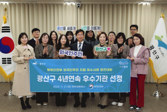 ¡®¿ì¸®´Â ¸ðµÎ ±¤»ê½Ã¹Î¡¯À̶ó´Â ÁÖÁ¦·Î Âü°¡ÇÑ ±¤»ê±¸´Â ¿ÃÇØ È£³²±Ç ÃÖÃÊ·Î ¿Ü±¹ÀÎ Àü´ã ºÎ¼ÀÎ ¡®¿Ü±¹ÀÎÁֹΰú¡¯¸¦ ½Å¼³Çϰí, Áö¿ª 21°³ µ¿¿¡ ´õÇØ ¿Ü±¹ÀÎÁÖ¹ÎÀ¸·Î ±¸¼ºµÈ °¡»óÀÇ µ¿ÀÎ ¡®22¹øÂ° ¸í¿¹µ¿¡¯À» ¸¸µé¾î ¿Ü±¹ÀÎÁֹΰúÀÇ ´ëȸ¦ ÃßÁøÇÏ´Â µî ¿Ü±¹ÀÎ ÁÖ¹ÎÀ» ÁøÁ¤ÇÑ ½Ã¹ÎÀ¸·Î ¼¼¿ì°í, ±Ç¸®¸¦ º¸ÀåÇÑ Á¤Ã¥À¸·Î Å« ÁÖ¸ñÀ» ¹Þ¾Ò´Ù.