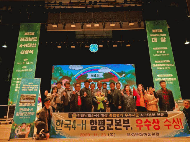 À̳¯ ÇÔÆò±º4-Hȸ´Â û³â4-H ºÎ¹® ¡ãÇÔÆò±º4-H¿¬ÇÕȸ ±è½Â¼ø ȸÀåÀÌ Çѱ¹4-HÀü³²º»ºÎȸÀå»ó(ÃÖ¿ì¼ö»ó), ½Ã±º4-Hº»ºÎ Á¾ÇÕÆò°¡ ºÎ¹® ¡ãÇѱ¹4-HÇÔÆò±ºº»ºÎ(ȸÀå Àå°©±â)°¡ Çѱ¹4-HÀü³²º»ºÎȸÀå»ó(¿ì¼ö»ó), ÀÚ¶û½º·± ¼±¹è¡¤ÈĹè»ó ºÎ¹® ¡ãÁ¤Ãµ¼ö(Çѱ¹4-HÀü³²º»ºÎ °¨»ç)ȸÀåÀÌ Àü³²4-H¿¬ÇÕȸÀå»ó(¼±¹è»ó)À» ¼ö»óÇß´Ù.