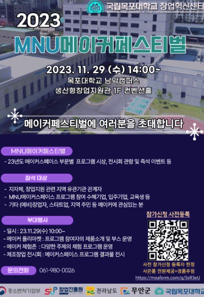 âÁ¶Çõ½Å(¸ÞÀÌÄ¿) â¾÷¿¡ °ü½ÉÀÖ´Â »ç¶÷µéÀº ´©±¸³ª Âü¿©ÇÒ ¼ö ÀÖÀ¸¸ç, ±Ã±ÝÇÑ »çÇ×Àº ¸ñÆ÷´ëÇб³ â¾÷Çõ½Å¼¾ÅÍ MNU¸ÞÀÌÄ¿½ºÆäÀ̽º·Î ¹®ÀÇÇÏ¸é µÈ´Ù.