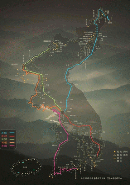 ¡®Áõº¸¹®Çåºñ°í(1908³â)¡¯¿¡ µû¸£¸é Á¶¼± Èıâ Áß¾ÓÁ¤ºÎ´Â 5°³ÀÇ Á÷ºÀ, 23°³ÀÇ °£ºÀ ³ë¼±À» ¿î¿µÇß´Ù. Àüü ³ë¼±¿¡´Â ÃÑ 622°³ ºÀ¼ö°¡ Á¸ÀçÇß´Ù. ±× Áß ºÎ»ê ÀÀºÀ°ú ¼¿ï ¸ñ¸è»ê Á¦2ºÀ¼ö¸¦ ¿¬°áÇÏ´Â ¡®Á¦2·Î Á÷ºÀ¡¯, ¿©¼ö µ¹»êµµ¿¡¼ ¼¿ï ¸ñ¸è»ê Á¦5ºÀ¼ö¸¦ ¿¬°áÇÏ´Â ¡®Á¦5·Î Á÷ºÀ¡¯ÀÌ ³²ÇÑ¿¡ À§Ä¡Çϰí ÀÖ°í, ³ª¸ÓÁö 3°³ Á÷ºÀ ³ë¼±Àº ºÏÇÑ¿¡ À§Ä¡Çϰí ÀÖ´Ù. ¡®Áõº¸¹®Çåºñ°í¡¯´Â ´ëÇÑÁ¦±¹¿¡¼ 1790³â ÀÌÈÄ º¯°æµÈ ±¹°¡Á¦µµ¿¡ °üÇÑ »çÇ×À» ¹Ý¿µÇϱâ À§ÇØ ¡®¹®Çåºñ°í¡¯¸¦ ¼öÁ¤¡¤º¸¿ÏÇØ °£ÇàÇÑ Ã¥ÀÌ´Ù. °£ºÀ(ÊàÜç)Àº Á÷ºÀ ³ë¼±ÀÇ ´ÜÀýÀ» ¿ì·ÁÇØ À̸¦ º¸Á¶Çϱâ À§ÇØ ¼³Ä¡ÇÑ º¸Á¶¼±·Î¿¡ À§Ä¡ÇÑ ºÀ¼ö´Ù.